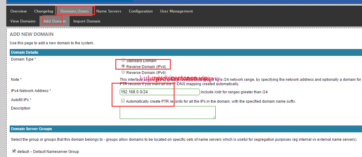 添加反向域名解析(如果有多个ip段的客户机,那么就如下图添加多个反向解析配置)