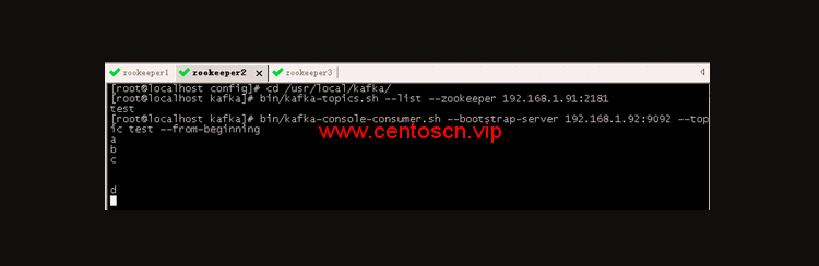 [root@localhost kafka]# bin/kafka-console-consumer.sh --bootstrap-server 192.168.1.92:9092 --topic test --from-beginning