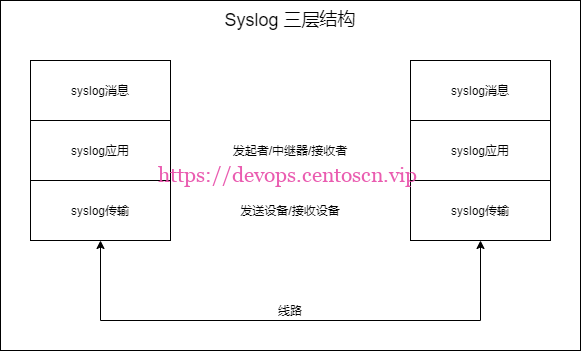 Syslog 协议使用三层结构,第一层是消息层,指要传输的信息;第二层是应用层,主要用于消息的生成,解析,路由和存储,代表有发送者,中继器和接受者。第三层是传输层,主要用于发送和接收网络上的信息,代表有发送设备和接收设备。 具体的层次结构见下图(这块的理解可以参考 OSI 7层模型或 TCP/IP 4层模型):